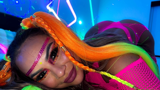 This web site contains sexually explicit material:Laser lights pulse and sweat drips as Essie Gotback, the rave-loving Latina with massive tits and a phat juicy ass, struts into Brian Omally’s neon-soaked afterparty pad in glowing cutout bodysuit, heels clacking like a bassline, sweat glittering like rave dust. The DJ stud has the tracks thumping hard, and she teases with a slow, body-rolling dance, shaking her huge boobs and thick booty. Brian offers her both his beats and his throbbing cock. She strips to the rhythm, drops to her knees and slurps his dick deep, gagging sloppy wet sounds syncing to the trance. He titfucks her massive gleaming tits, fingers her dripping pussy until her legs twitch and she squirts. Then he slams inside her tight cunt as she climbs on top and rides him balls-deep, flips her over and pounds her hard. Her moans get louder than the speakers, echoing between light flashes as he thrusts sideways, upside down, on all fours, slapping her fat ass red. The ritual ends when he pulls out and blasts a thick load across her face, covering her in cum.
