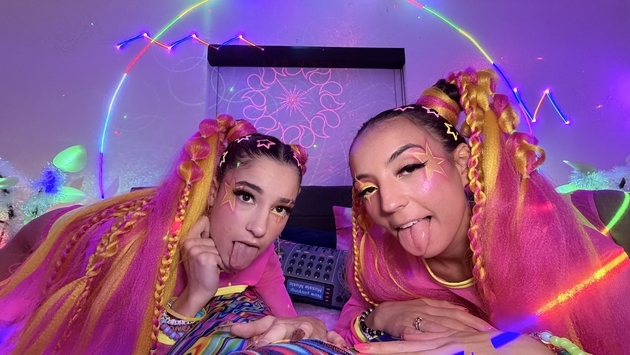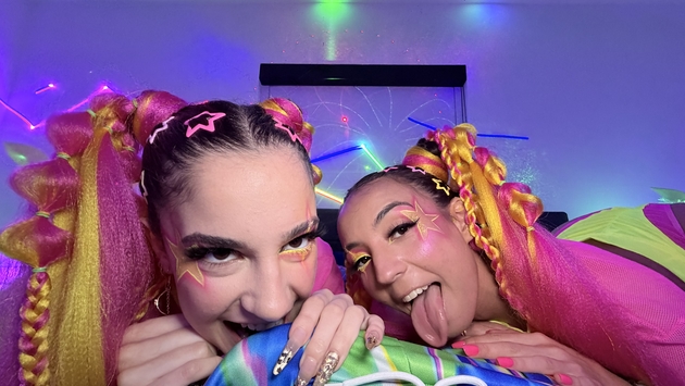 This web site contains sexually explicit material:Brian walks into rave bunny paradise as Sasha and Madison wait in neon glory, pigtails glowing, bunny ears bouncing under UV lights. Bass thumps as they spread wide fingering themselves, then attack his cock with synchronized deepthroat action. Threesome madness, cowgirl bouncing, missionary kissing, doggy breeding, ends with thick creampies flooding both cunts and dripping out in neon streams. Second round delivers reverse cowgirl grinding, more throat destruction, and a dual facial that glazes both rave sluts under the blacklights.