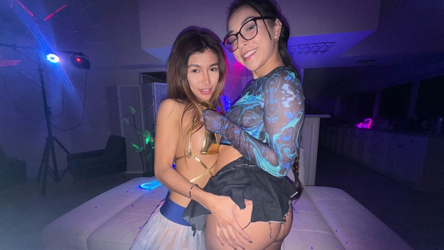 This web site contains sexually explicit material:Fresh off the rave, Clara and Madison land on Brian's bed kissing and stripping nude, grabbing at each other's tits as the energy carries over. Clara goes down on Madison's soaked pussy with Brian joining tongue-deep until she bucks, and both turn to devour Clara's petite cunt until she quivers. The girls kneel together to share his cock and tongue his balls in tandem before Clara rides cowgirl through orgasm with Madison teasing her clit. Madison follows on reverse, swallowing every inch while Clara licks his balls beneath. Clara climbs on top of Madison to form a pussy tower and Brian pounds the top savagely before wrecking the lobby below. Choking doggy destroys Madison on camera, Clara rides from behind, he takes them back to back, sits Clara on Madison's face for missionary, then drains deep inside Madison. Clara licks every drop from her dripping pussy and sucks his cock clean.