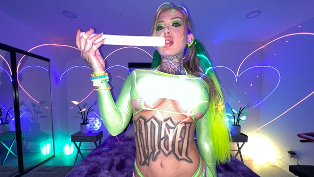 This web site contains sexually explicit material:Strobes flash and bass rattles as Cristina Savoy surrenders to Brian Omally’s neon-soaked afterparty pad in her sexy neon green outfit and hair, sweat dripping like rave dust. The tracks are booming, and she says she’s dreamt of the afterparty wildness. Brian Omally offers her both his beats and his cock. She gets on her knees and slurps him deep, sloppy sync with the EDM. He fingers her until legs twitch. Then she climbs on and rides hard, he flips her for more thrusting. Moans echo with light flashes in various positions. Ends with a creampie, the rave night wilder than ever.
