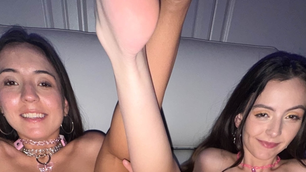 This web site contains sexually explicit material:Lasers slice the haze and vibes rumble as Serena Hill and Sasha Tatcha invade Brian Omally’s afterparty lair in fishnets and neon orange onesies, asses glowing like kandi under UV. They lock lips, fingering each other’s wet holes in rhythm, building to Brian’s thick dick reveal. Kneeling, they devour him with drooling blowjobs, throats bulging to the drop. He titfucks their perky racks, then drills Serena missionary, Sasha grinding clit-on-clit. Screams echo over bass as he rails in spoon and all fours, balls slapping. Ends with deep creampie pumping Serena full, Sasha lapping the oozing cum from her fucked pussy, sucking it clean in ecstatic ruin.